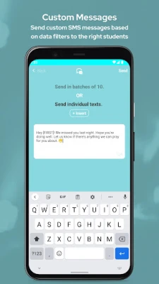 • Send individual texts to students with personalized messages or group texts utilizing your own phone number.